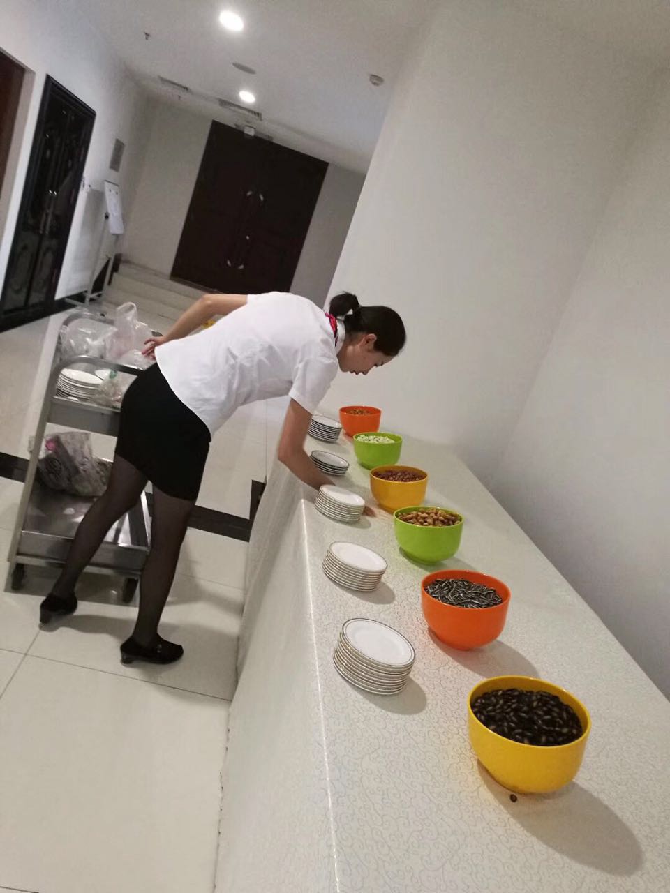 為了保障本次會議的順利召開,省高法項(xiàng)目部在接到通知后,全體員工放棄了周末休息,全員到崗為本次會議提前做準(zhǔn)備。從綠化、外圍、水電、到樓內(nèi)各區(qū)間衛(wèi)生均認(rèn)真排查,并于8月22日晚結(jié)束全部準(zhǔn)備工作。由于本次會議規(guī)格高、要求高,省高法項(xiàng)目部除了要承擔(dān)會議的基本布置接待外,還需在會議休息間歇準(zhǔn)備茶點(diǎn)。為了給外地參會領(lǐng)導(dǎo)留下美好的印象,省高法項(xiàng)目部專門選擇了具有蘭州特色的白粉桃、巴梨、黃河密等水果,配以蘭州特色糕點(diǎn)和干果作為茶歇區(qū)小點(diǎn),品種多樣的小食水果讓前來參會的領(lǐng)導(dǎo)紛紛贊不絕口。