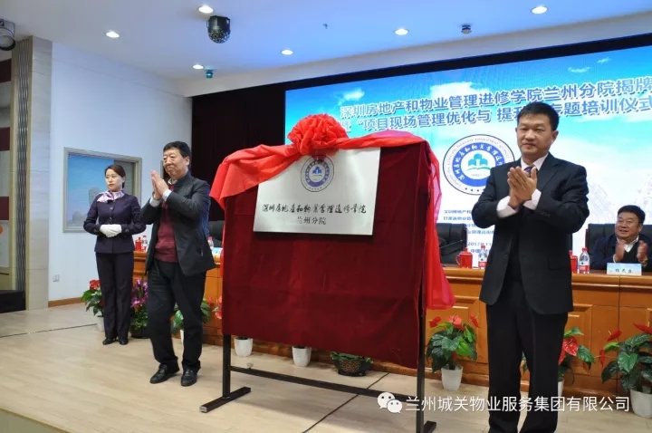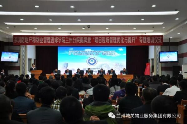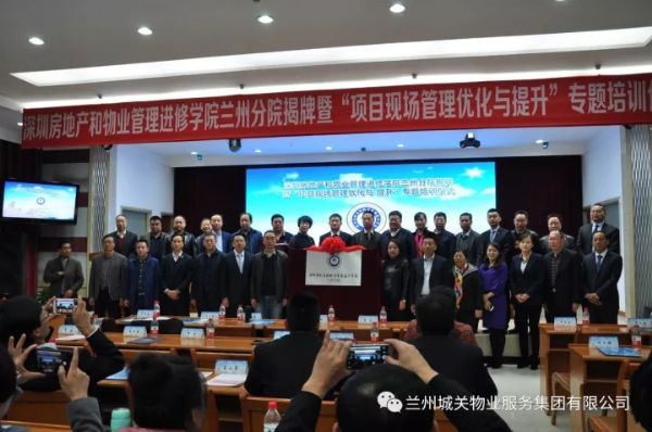 11月9日,深圳房地產(chǎn)和物業(yè)管理進(jìn)修學(xué)院蘭州分院揭牌暨“項(xiàng)目現(xiàn)場(chǎng)管理優(yōu)化與提升”專題培訓(xùn)儀式在蘭州新聞出版大廈七樓多功能廳舉辦。蘭州市人力資源和社會(huì)保障局、蘭州市住房保障和房產(chǎn)管理局、蘭州市商務(wù)局等單位的領(lǐng)導(dǎo)及深圳房地產(chǎn)和物業(yè)管理進(jìn)修學(xué)院院長(zhǎng)劉業(yè)全、蘭州城關(guān)物業(yè)服務(wù)集團(tuán)有限公司董事長(zhǎng)楊民召、甘肅新華飛天物業(yè)管理有限公司總經(jīng)理張建國(guó)等相關(guān)企業(yè)代表300余人出席了揭牌儀式。