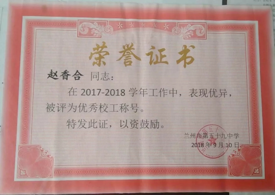 ▲校方給城關(guān)物業(yè)員工頒發(fā)的獎狀