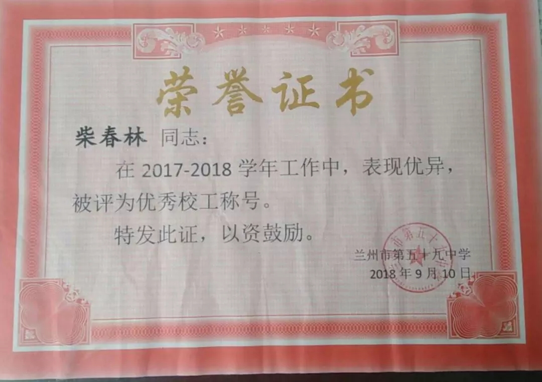 蘭州市第五十九中學(xué)召開教師節(jié)表彰大會,會上城關(guān)物業(yè)員工魏萍、柴春林、趙香合等被評為“優(yōu)秀校工”。