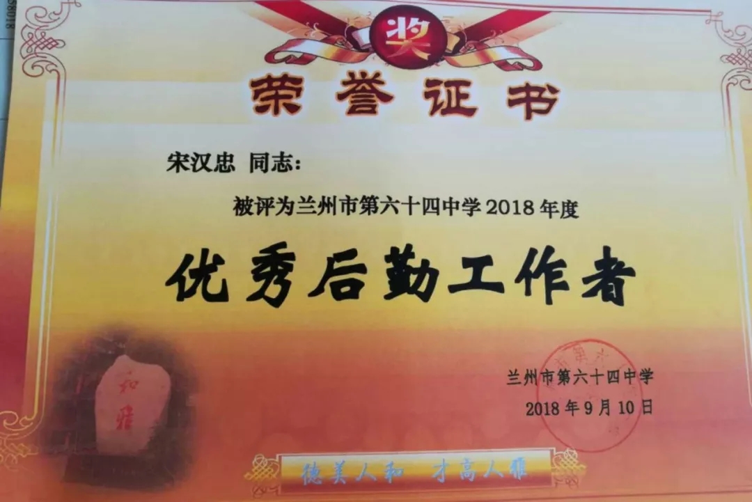 ▲城關(guān)物業(yè)員工宋漢忠被評為“優(yōu)秀后勤工作者”