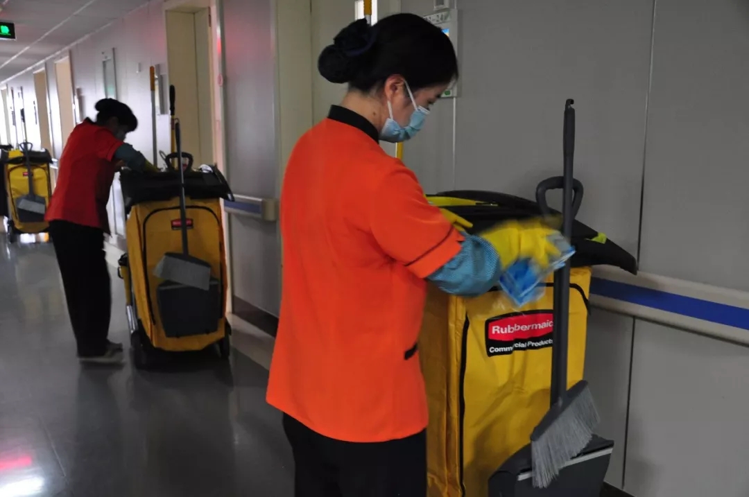 ▲城關(guān)物業(yè)保潔員在進(jìn)行現(xiàn)場清潔比賽