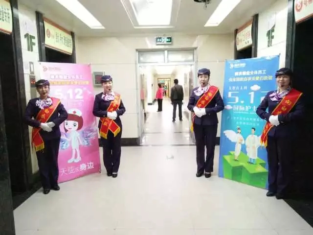 城關物業(yè)醫(yī)院類各項目部在護士節(jié)當天,在醫(yī)院各主要入口處擺放節(jié)日祝福展架,并向來往的醫(yī)護人員行禮,向他們送去節(jié)日的祝福。
