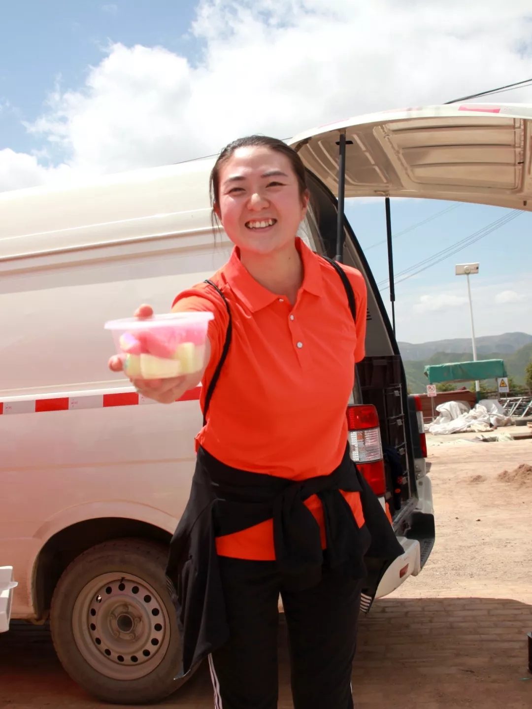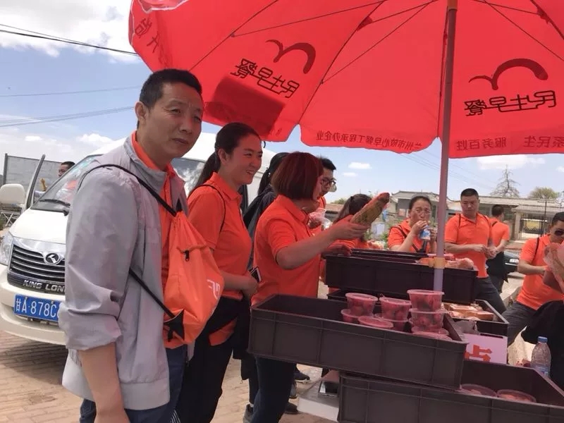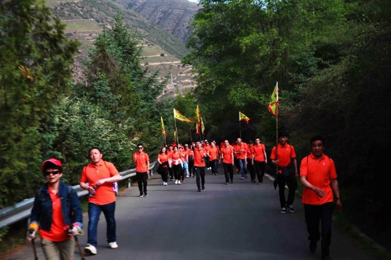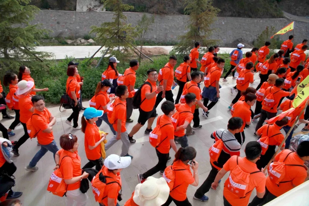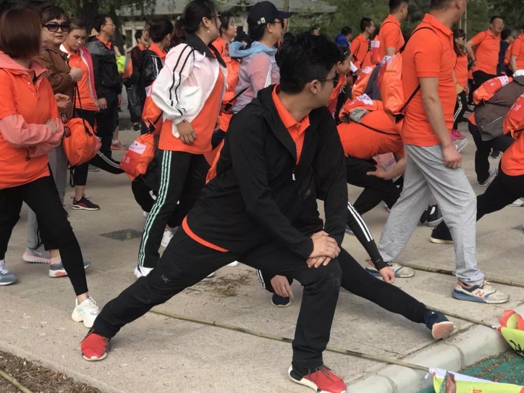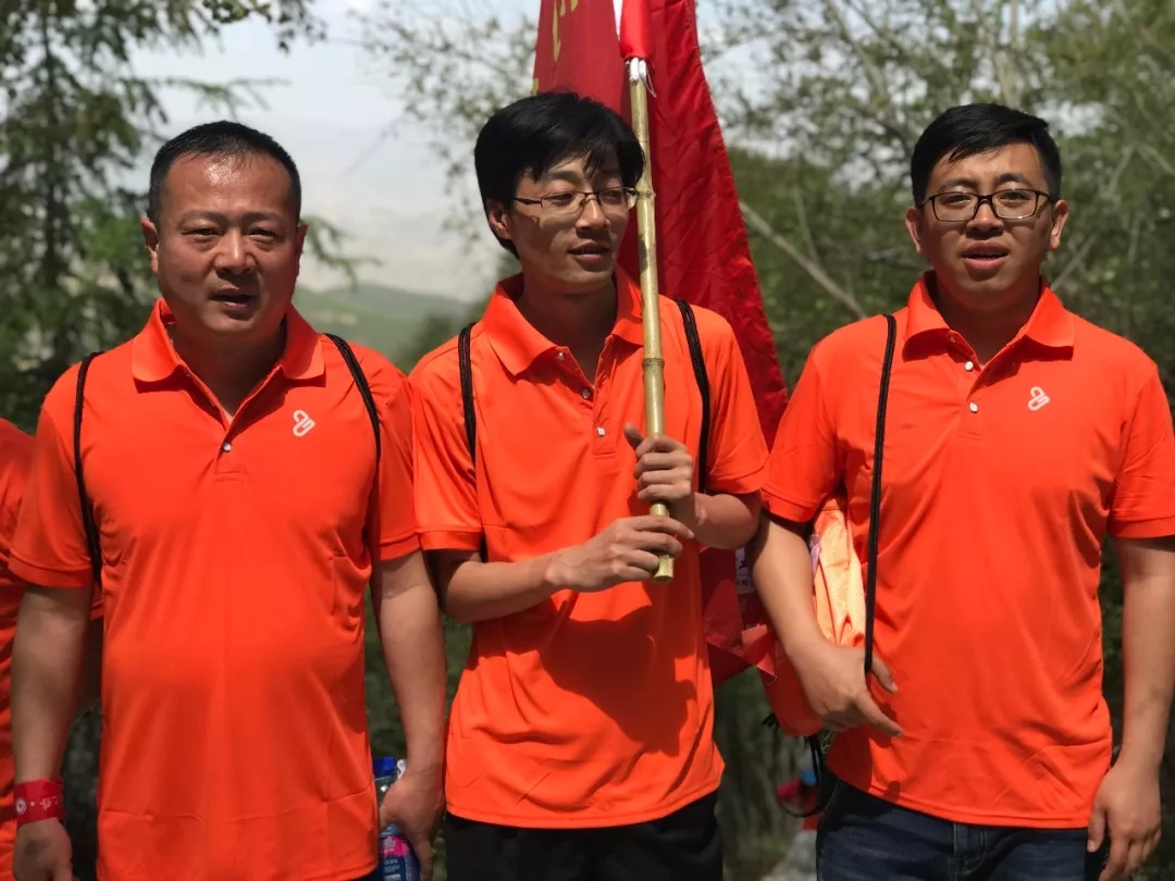 大家身著代表著企業(yè)的橙色上衣,肩扛代表各隊(duì)的旗幟,