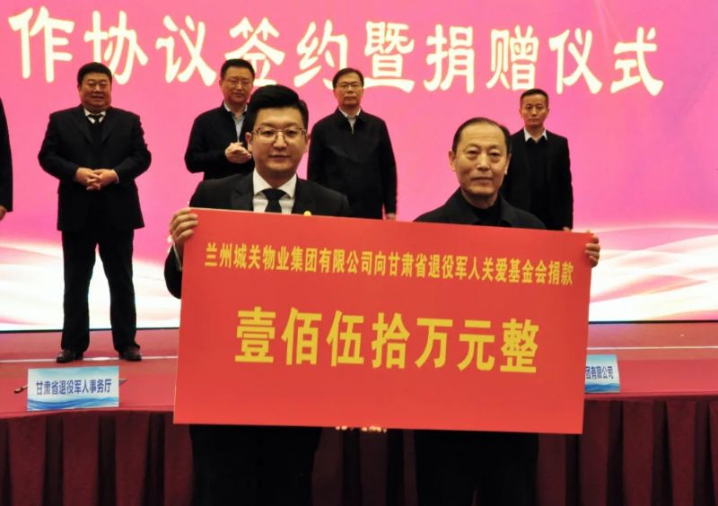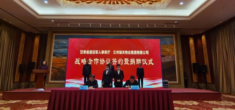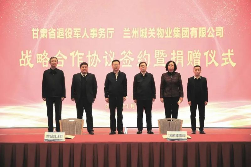社會尊崇,愛滿人間。為深化雙擁共建,關(guān)愛退役軍人,甘肅省退役軍人事務(wù)廳與蘭州城關(guān)物業(yè)集團戰(zhàn)略合作協(xié)議簽約暨捐贈儀式在省城寧臥莊賓館舉行。