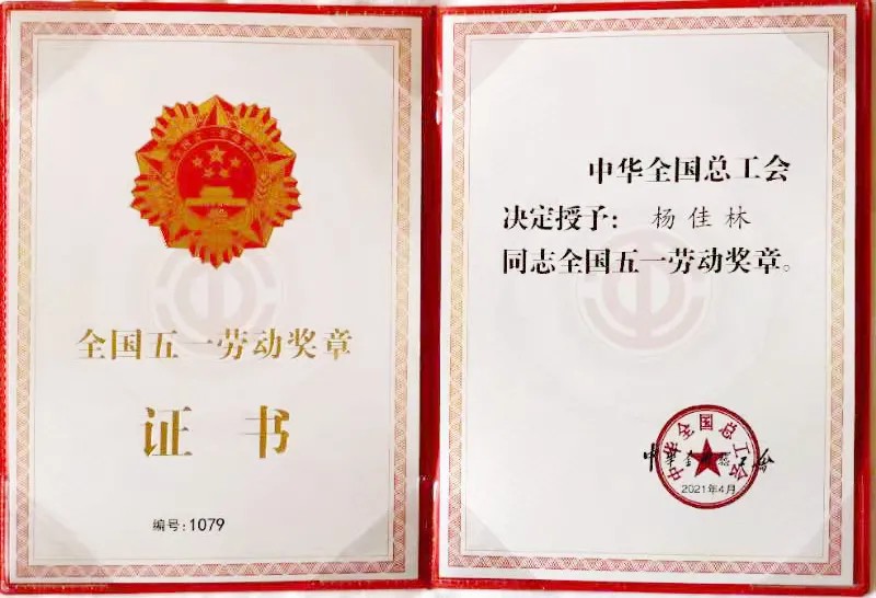 榮獲“全國五一勞動獎章”