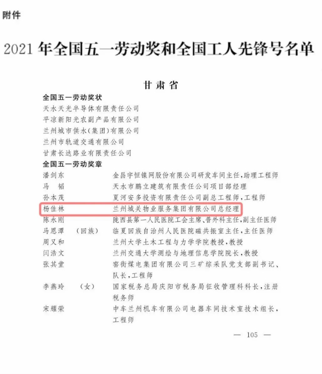 作為一名年輕的企業(yè)家,楊佳林在企業(yè)中積極推動“黨工共建”,實現(xiàn)企業(yè)民主管理的制度化、常態(tài)化,在全面打贏脫貧攻堅戰(zhàn)的過程中,蘭州城關物業(yè)主動對接貧困山區(qū),充分挖掘社區(qū)消費潛力,建立消費扶貧產(chǎn)品的“綠色通道”,以實際行動助力鄉(xiāng)村振興。正是因為楊佳林對社會和時代的責任感,在他的帶領下,蘭州城關物業(yè)先后獲得“全國五一勞動獎狀”“全省非公經(jīng)濟黨建示范點”等300余項榮譽,楊佳林本人也相繼獲得了 “甘肅省五一勞動獎章”、“甘肅物業(yè)行業(yè)貢獻獎”、“甘肅省技術標兵”、全省百萬職工職業(yè)技能素質提升活動“優(yōu)秀組織者”、蘭州市首批“金城創(chuàng)新創(chuàng)業(yè)非公企業(yè)家”等多項榮譽。