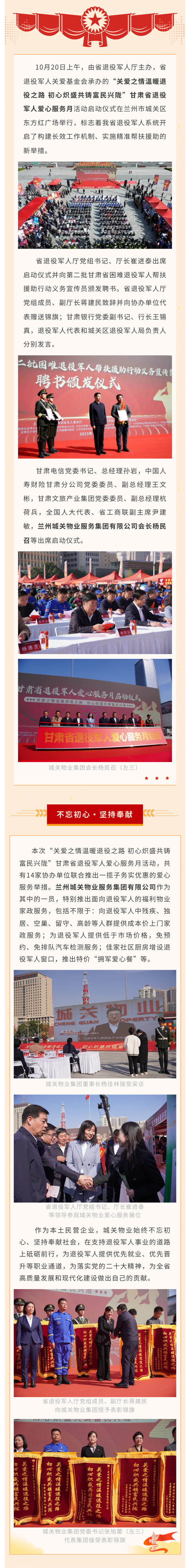 關愛在心·奉獻于行|城關物業(yè)集團獲省退役軍人廳錦旗表彰